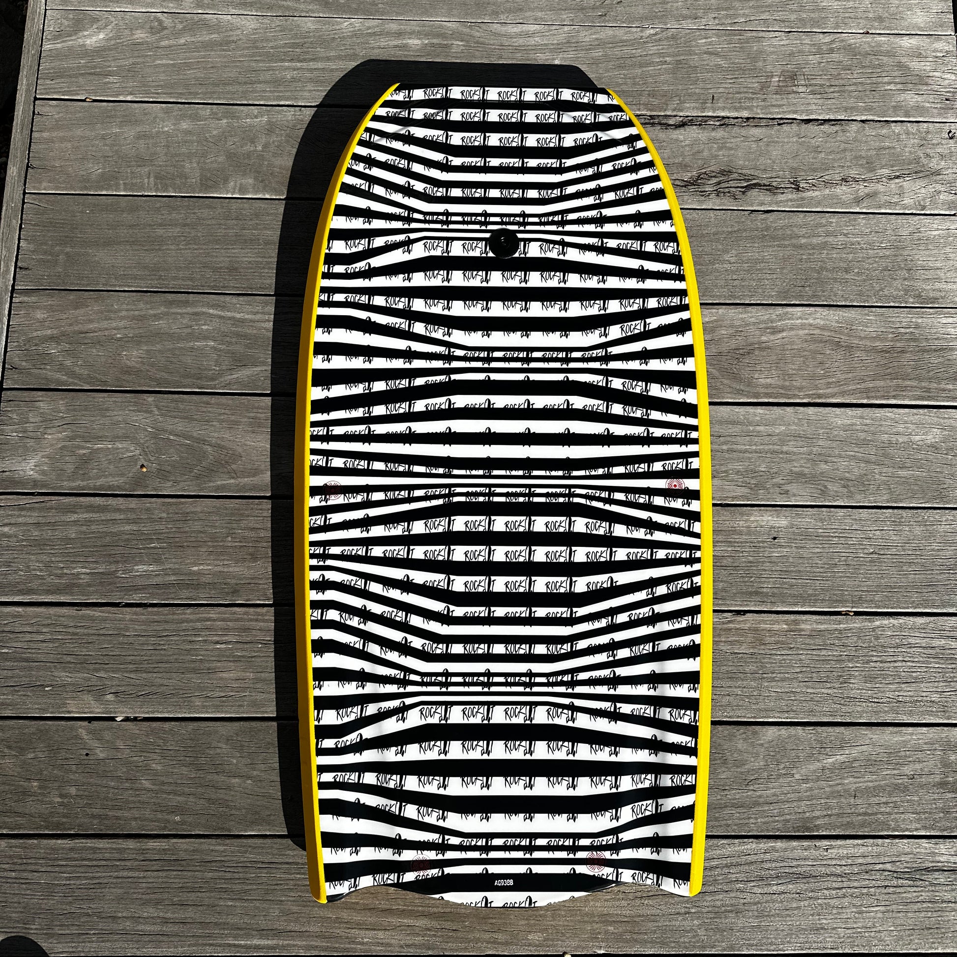 The Rock-It 42.5" SHARKGUARD bodyboard uses a cutting edge 3D lamination process in which the all layers of the board are compressed and sealed within the mold at the factory. This results in a near seamless finish between the slick bottom and top materials and a more durable final product. No harmful dyes, glues, resins or toxins are used in the production process, and the board is manufactured in a facility that uses collected rainwater. All materials used are recyclable. All Rock-It surfboards come with a one year warranty against manufacturing defects.
